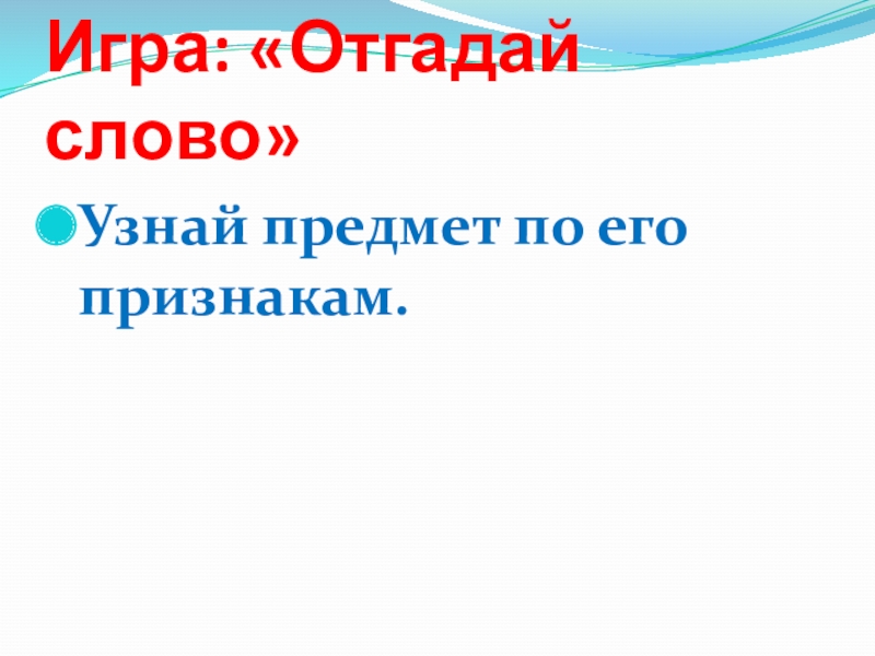Игра: «Отгадай слово»Узнай предмет по его признакам.