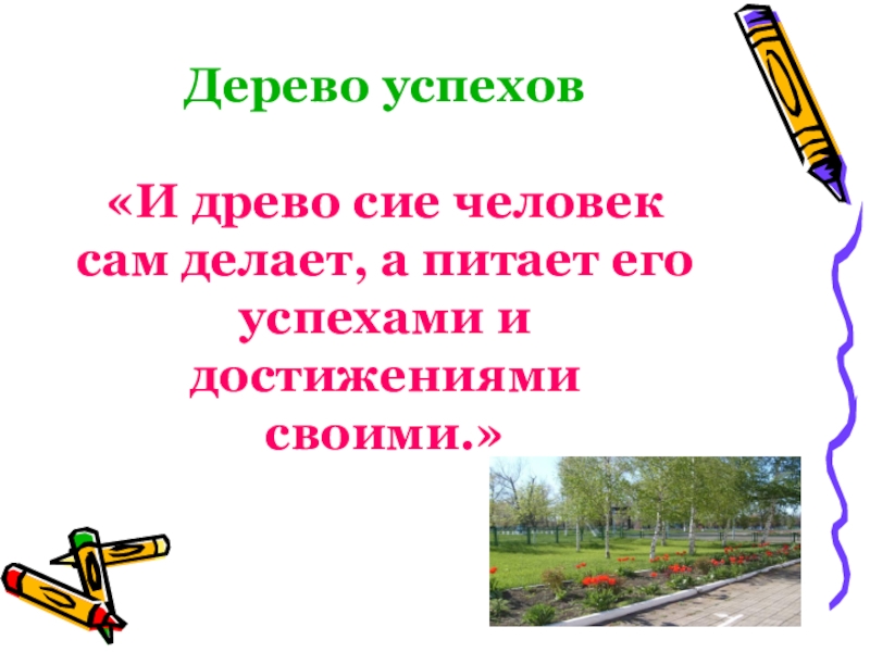 Слайд 9Дерево успехов «И древо сие человек сам делает, а питает его успехами