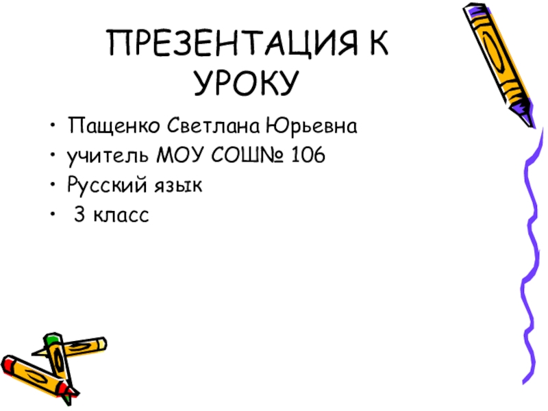 ПРЕЗЕНТАЦИЯ К УРОКУПащенко Светлана Юрьевнаучитель МОУ СОШ№ 106Русский язык 3 класс