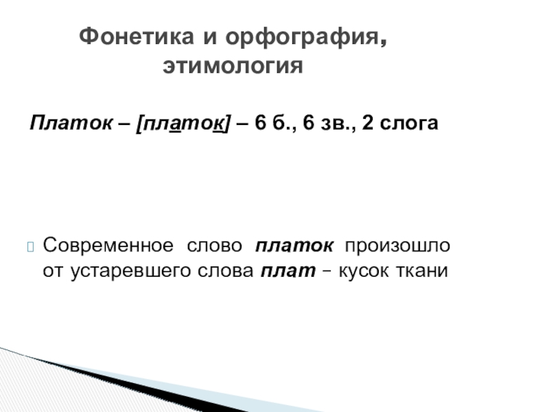 Платок – [платок] – 6 б., 6 зв., 2 слога