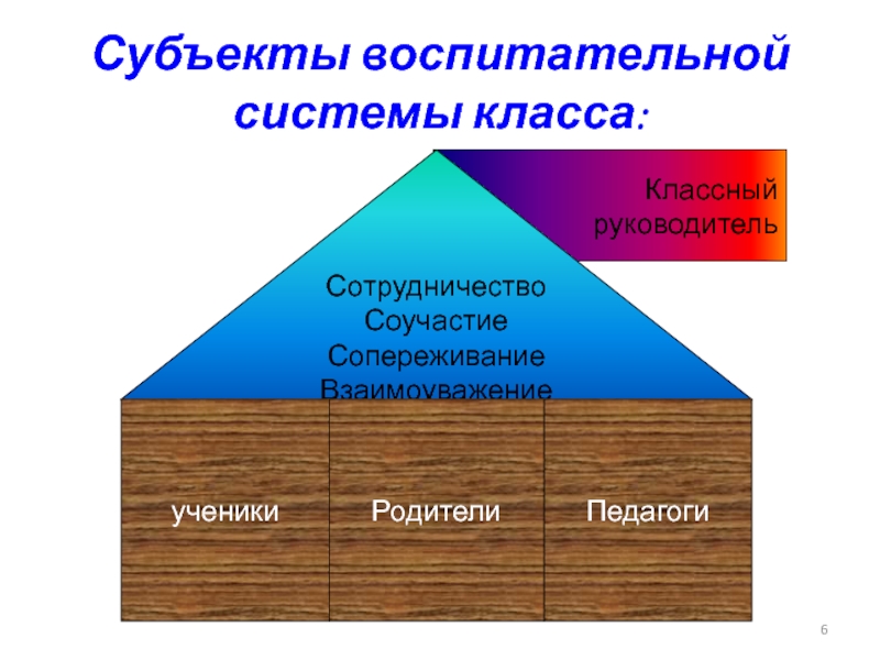 Классный руководительСубъекты воспитательной системы класса:СотрудничествоСоучастиеСопереживаниеВзаимоуважениеученикиПедагогиРодители
