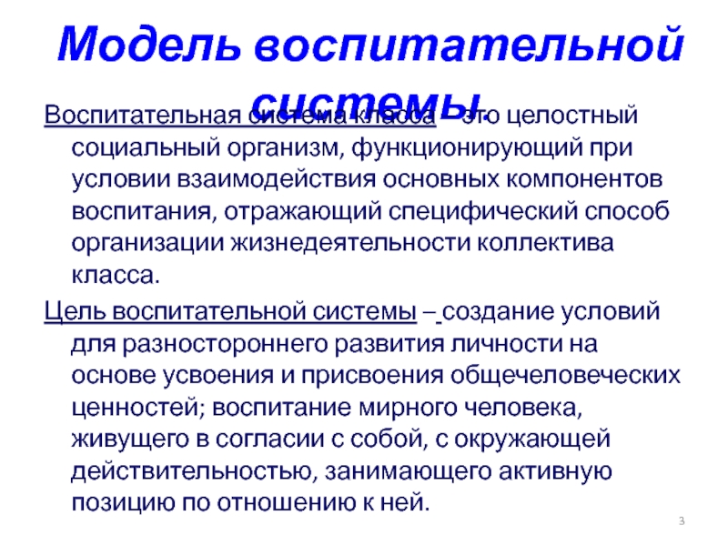 Слайд 3Модель воспитательной системы.