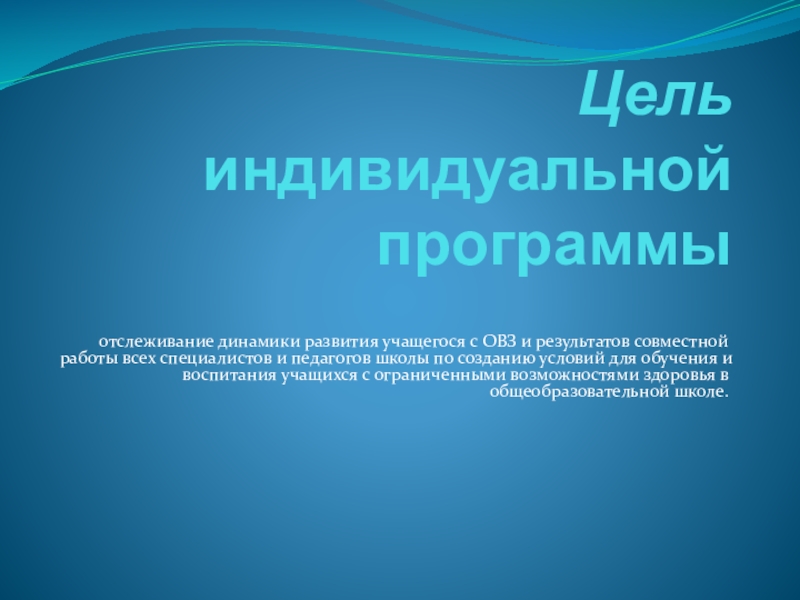 Слайд 2Цель индивидуальной программы