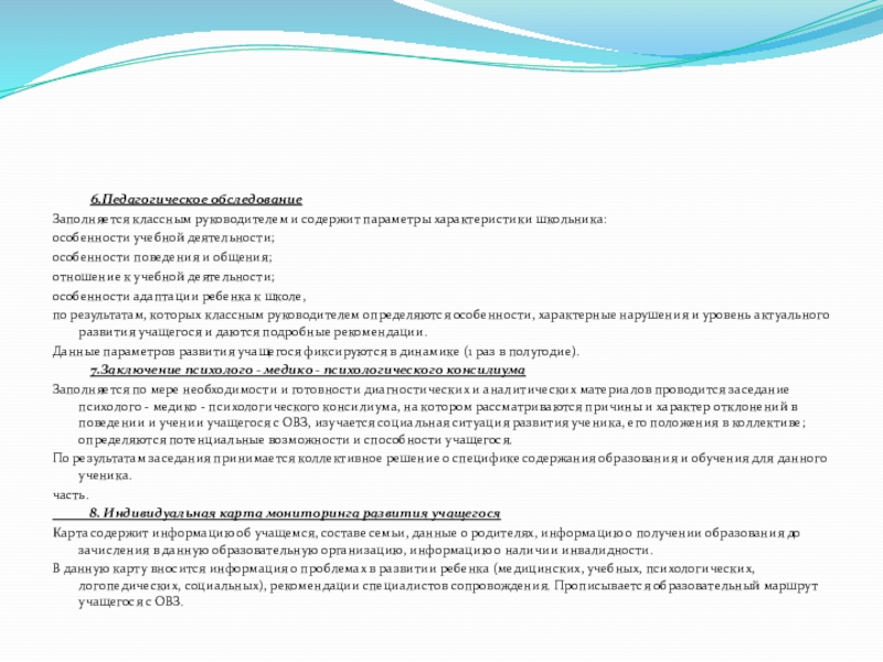 Также здесь размещается информация по результатам обследования учащегося с ОВЗ специалистами здравоохранения.