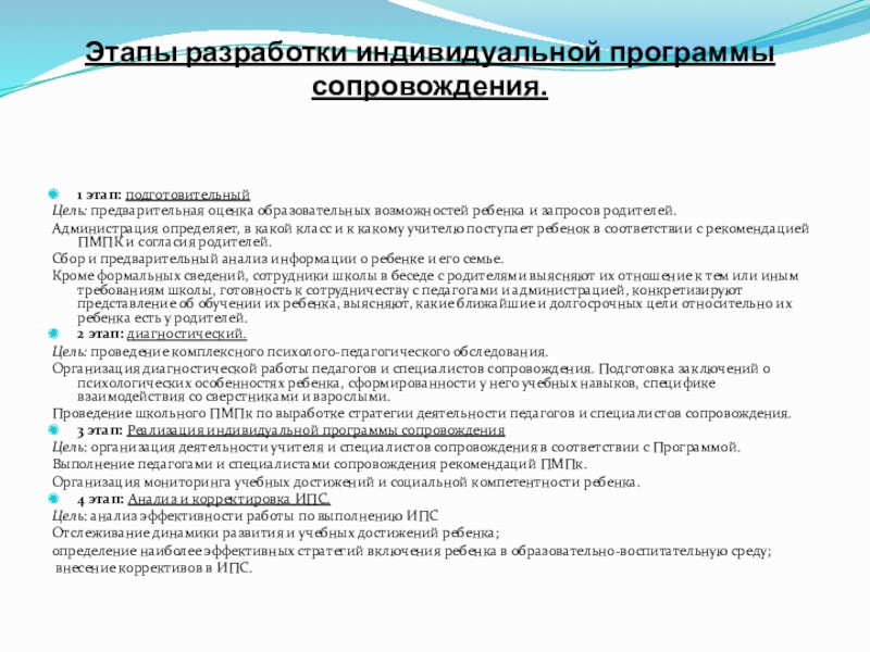 Слайд 5Этапы разработки индивидуальной программы сопровождения.