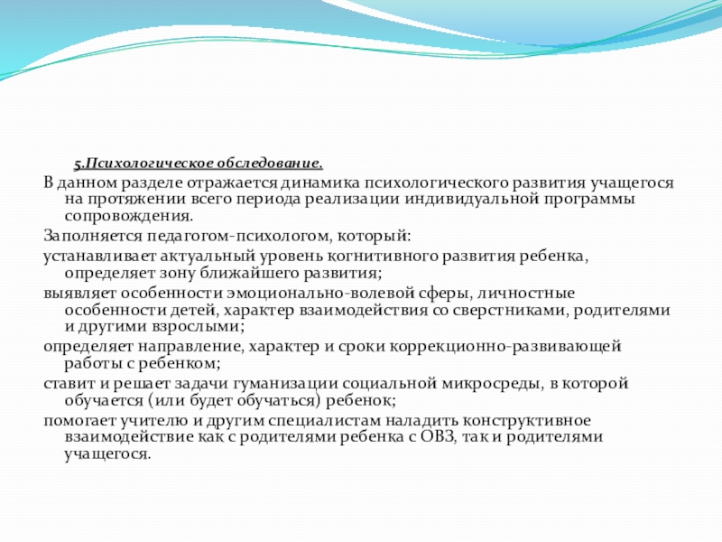 Организация диагностической работы педагогов и специалистов сопровождения. Подготовка заключений о психологических особенностях ребенка, сформированности у него учебных навыков, специфике взаимодействия со сверстниками и взрослыми.