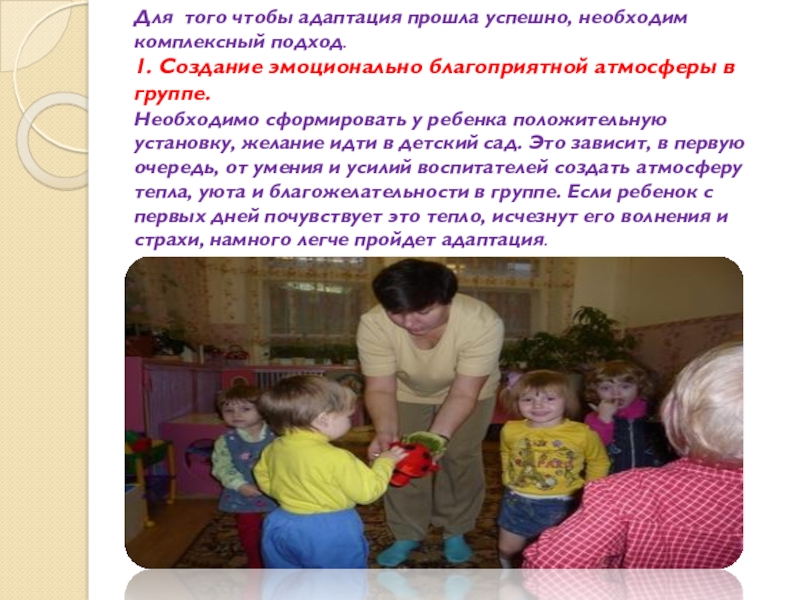 Слайд 5Для того чтобы адаптация прошла успешно, необходим комплексный подход.