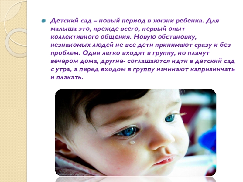 Слайд 4Детский сад – новый период в жизни ребенка. Для малыша это,