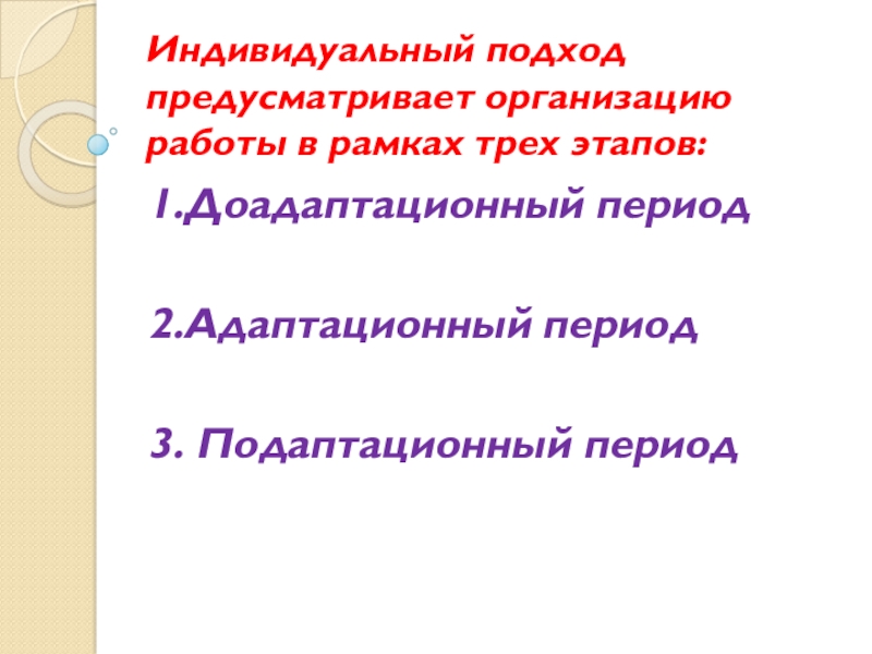 Слайд 3Индивидуальный подход предусматривает организацию работы в рамках трех этапов: