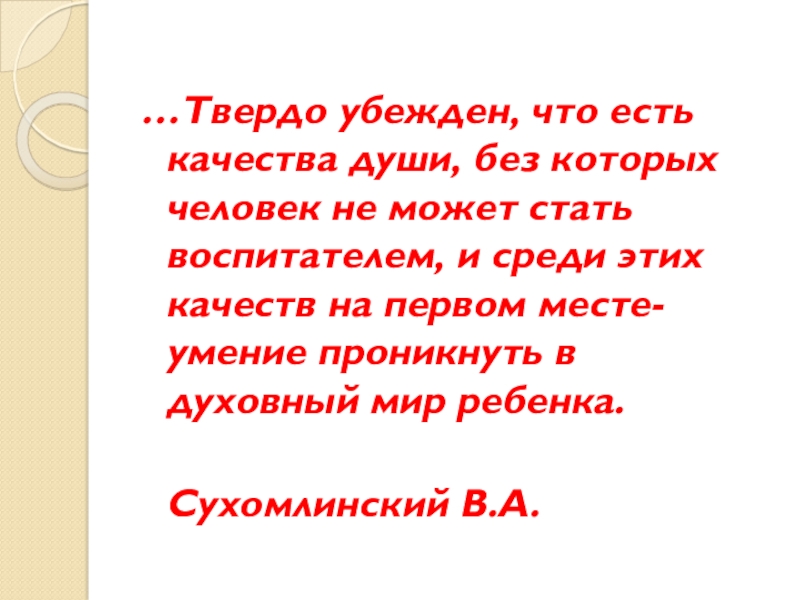 стать воспитателем, и среди этих качеств на первом месте- умение проникнуть в духовный мир ребенка.