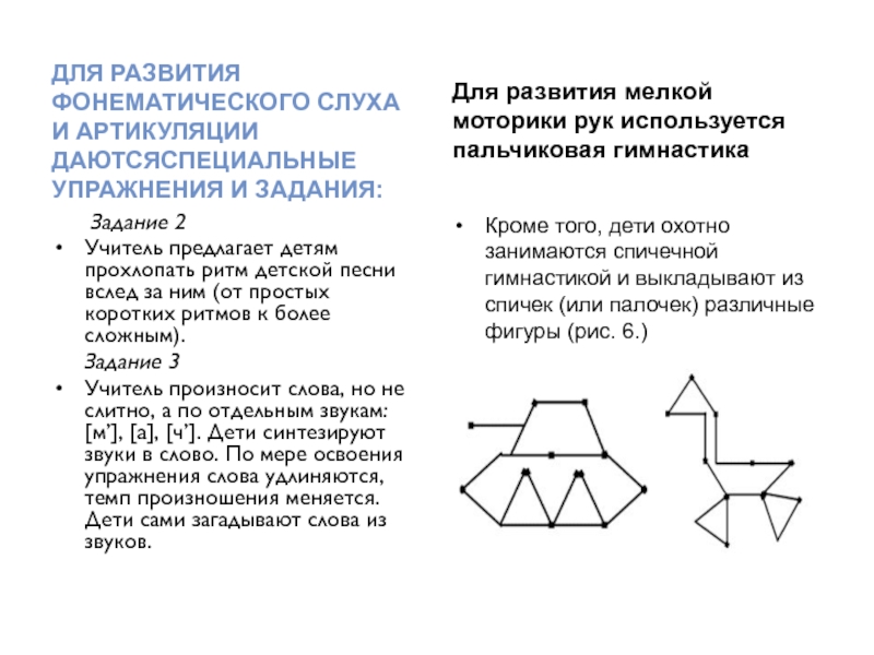 Кроме того, дети охотно занимаются спичечной гимнастикой и выкладывают из спичек (или палочек) различные фигуры (рис. 6.)