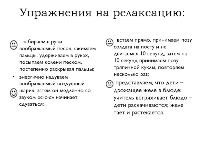 представляем, что дети – дрожащее желе в блюде: учитель встряхивает блюдо – дети раскачиваются; желе тает и растекается.
