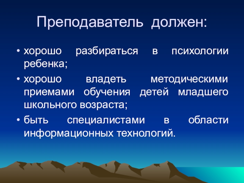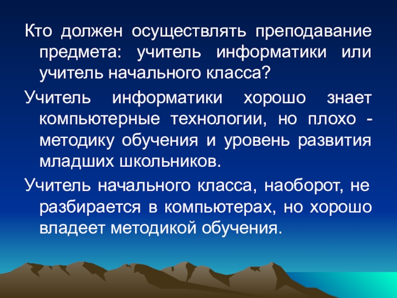 информатики хорошо знает компьютерные технологии, но плохо - методику обучения и уровень развития младших школьников.