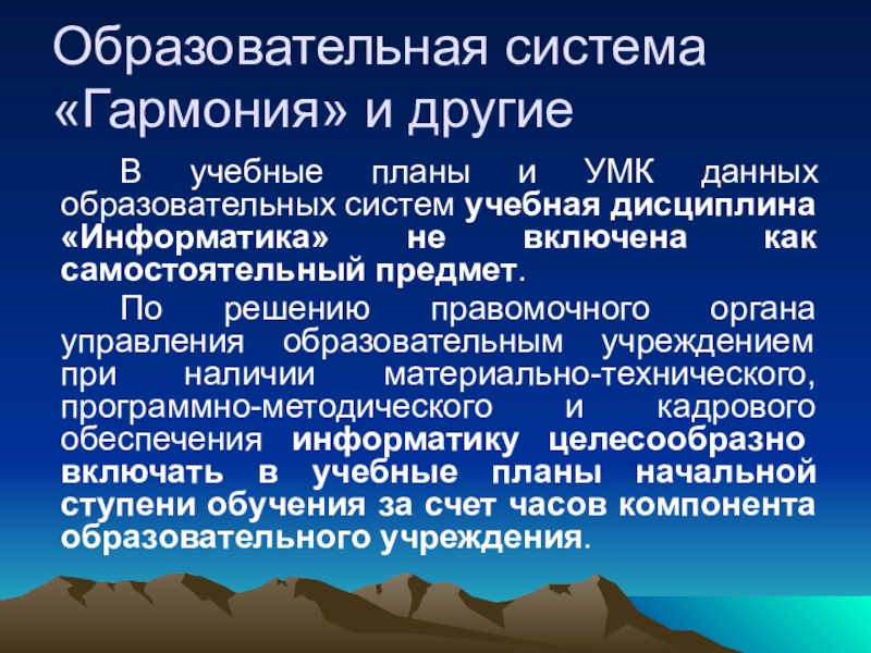 Слайд 27Образовательная система «Гармония» и другие