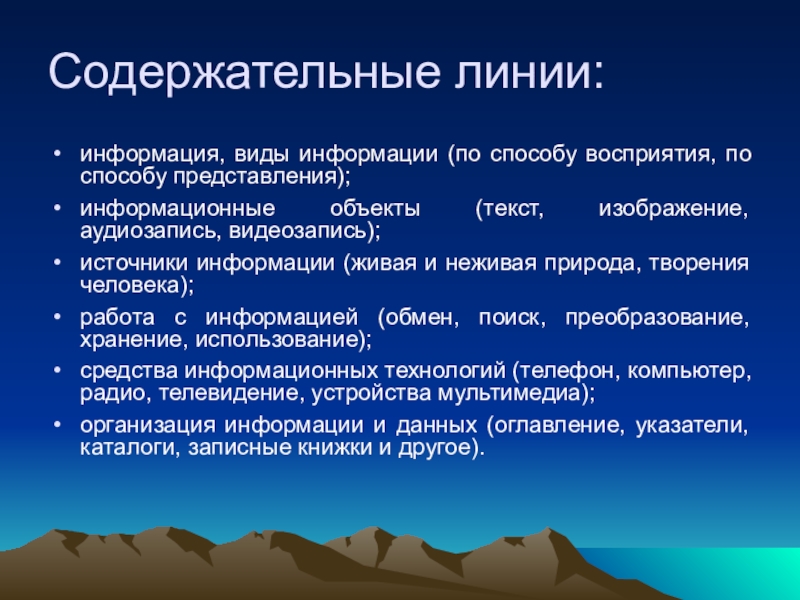 Содержательные линии: