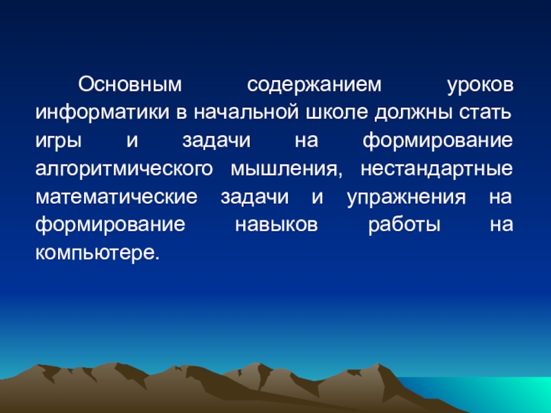 Слайд 4Основным содержанием уроков информатики в начальной школе должны стать игры и