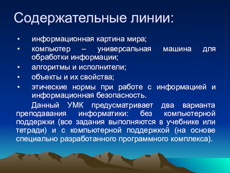 Слайд 33Основные содержательные линии: