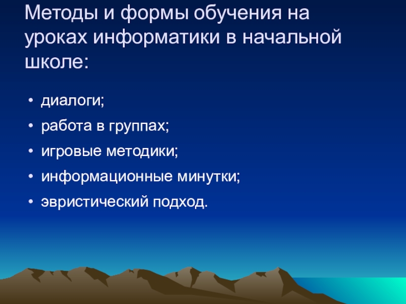 Слайд 5Методы и формы обучения на уроках информатики в начальной школе: