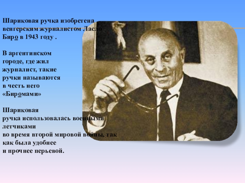 Слайд 11Шариковая ручка изобретена венгерским журналистом Ласло