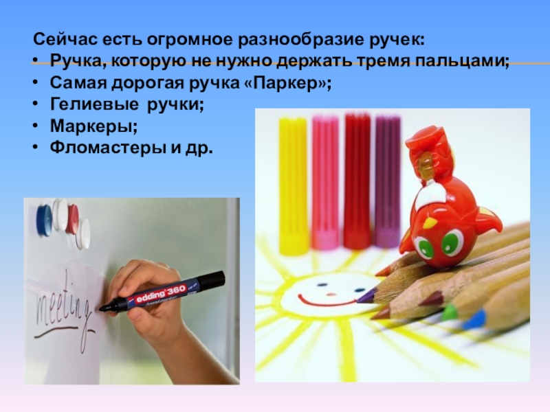Слайд 14 Сейчас есть огромное разнообразие ручек: