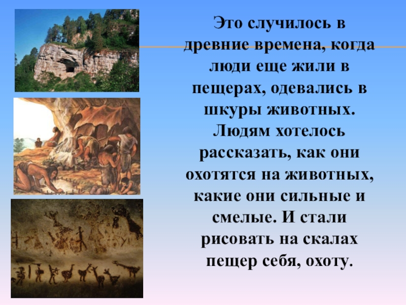 Слайд 3Это случилось в древние времена, когда люди еще жили в пещерах,