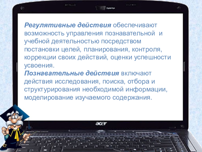 Слайд 7Регулятивные действия обеспечивают возможность управления познавательной и учебной деятельностью посредством постановки