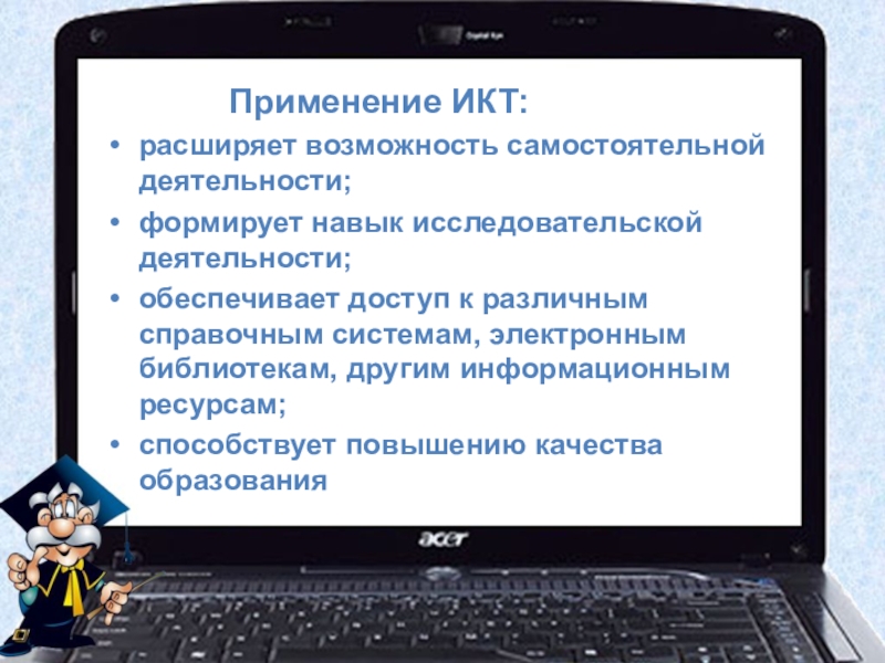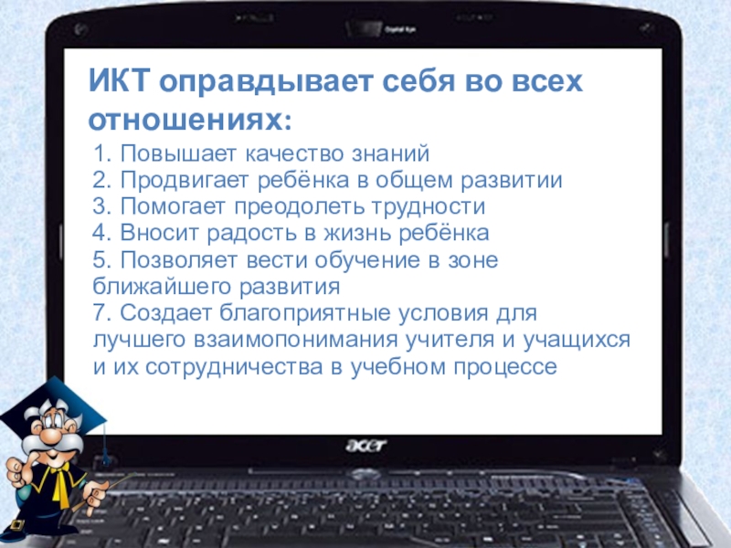 Слайд 26ИКТ оправдывает себя во всех отношениях:
