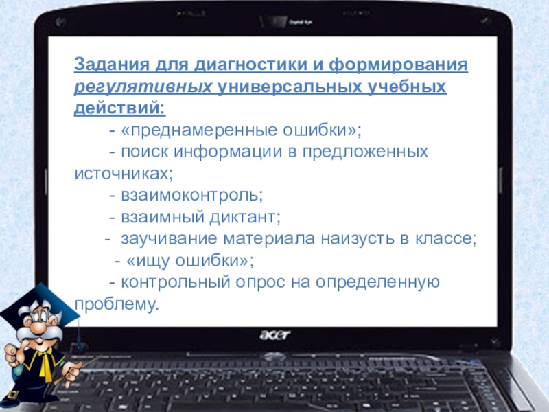 Слайд 18Задания для диагностики и формирования регулятивных универсальных учебных действий: