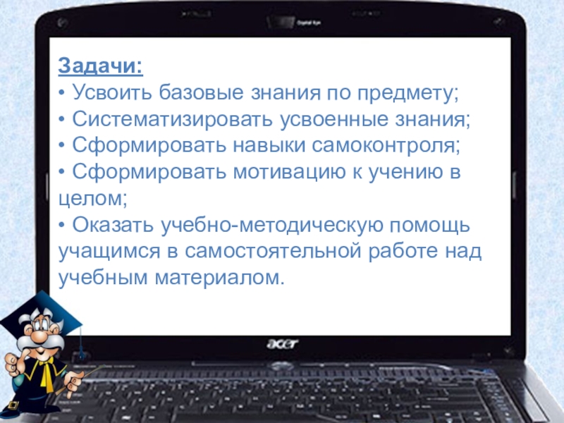 • Оказать учебно-методическую помощь учащимся в самостоятельной работе над учебным материалом.