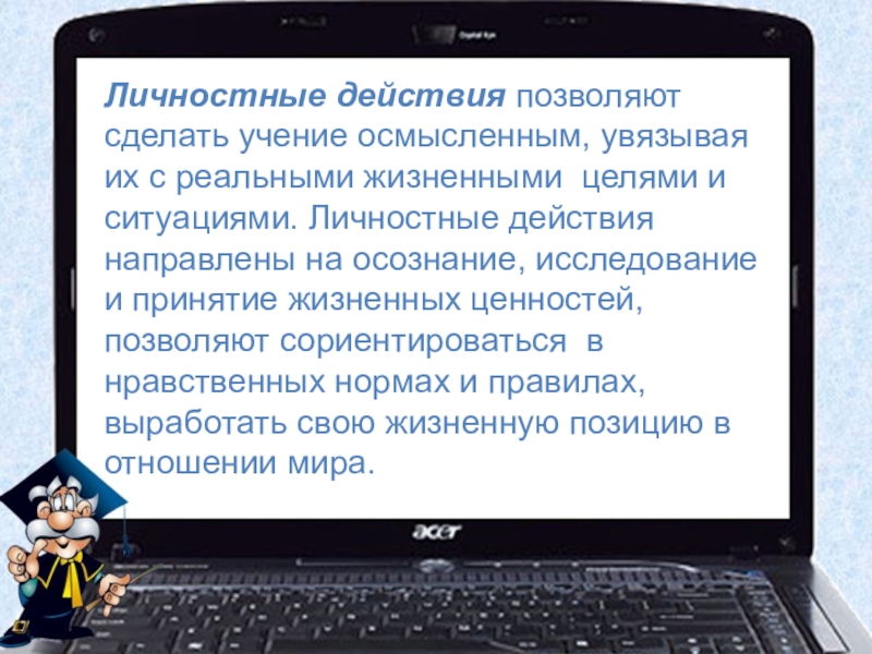 Слайд 5Личностные действия позволяют сделать учение осмысленным, увязывая их с реальными жизненными