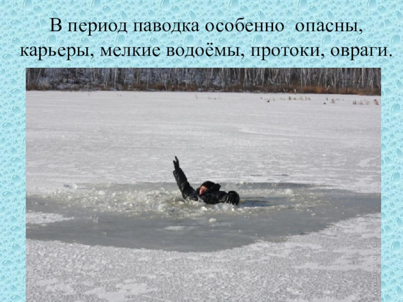 Слайд 2В период паводка особенно опасны, карьеры, мелкие водоёмы, протоки, овраги.