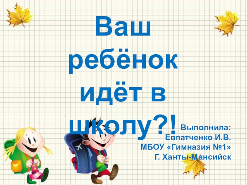 Ваш ребёнок идёт в школу?!Выполнила:Евпатченко И.В.МБОУ «Гимназия №1» Г. Ханты-Мансийск