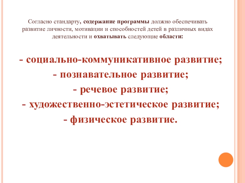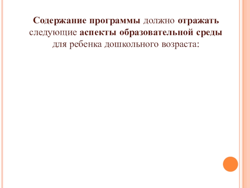 Содержание программы должно отражать следующие аспекты образовательной среды для ребенка дошкольного возраста: