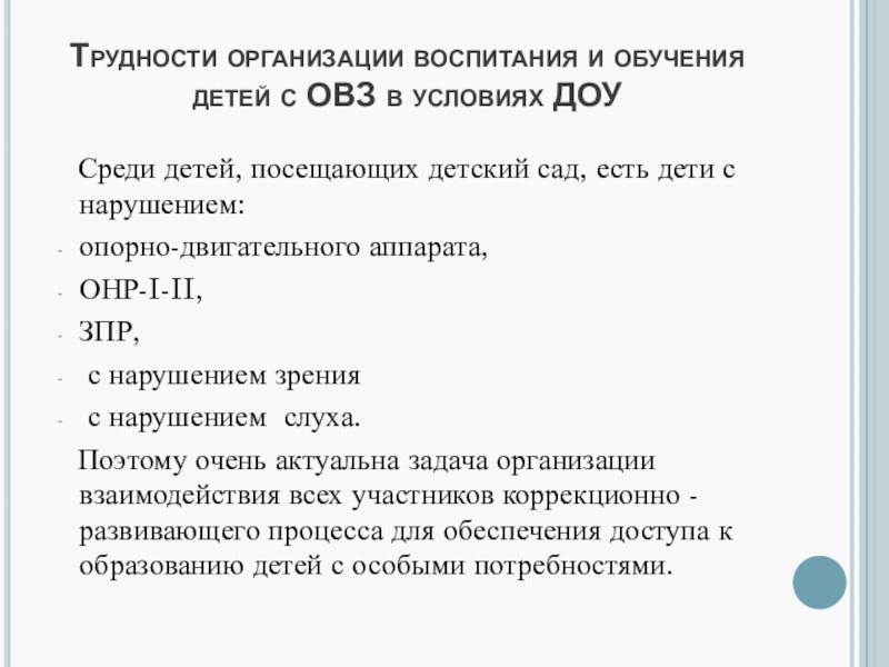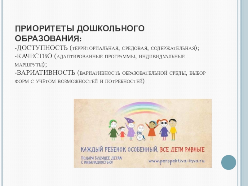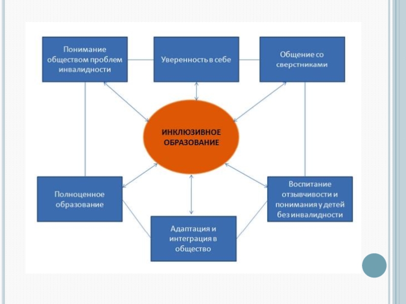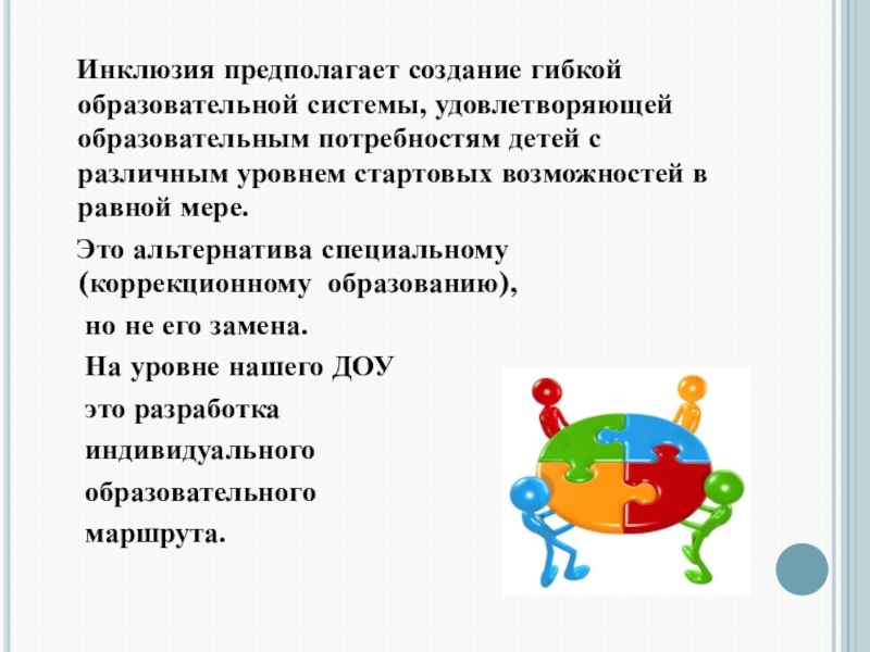 ИНКЛЮЗИЯ – это включение в образо- вательный процесс детей с ограничен- ными возможностями здоровья на равных правах с обычно развивающимися
