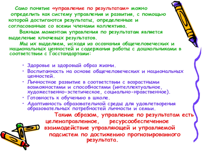 Мы их выделяем, исходя из осознания общечеловеческих и национальных ценностей и содержания работы с дошкольниками в соответствии с Госстандартами: