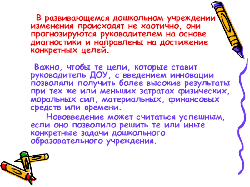 Важно, чтобы те цели, которые ставит руководитель ДОУ, с введением инновации позволяли получить более высокие результаты