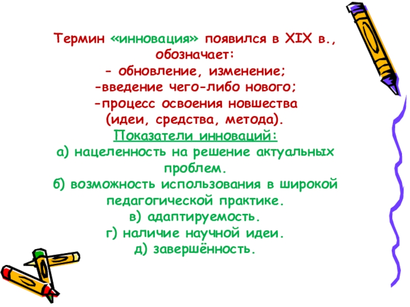Слайд 5Термин «инновация» появился в ХIХ в., обозначает: