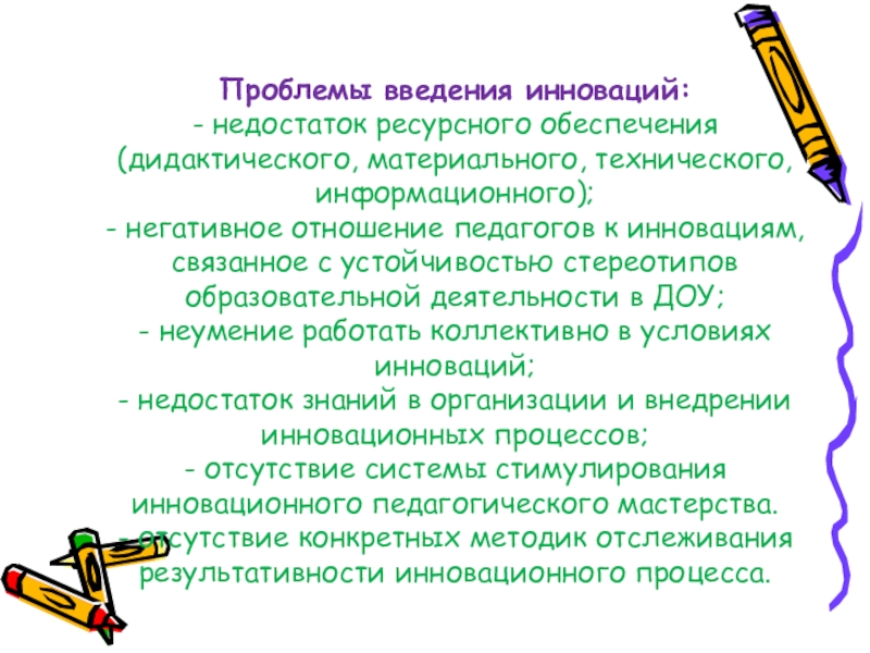 - недостаток ресурсного обеспечения (дидактического, материального, технического, информационного);