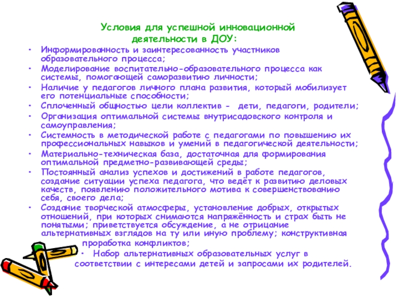 Нововведение может считаться успешным, если оно позволило решить те или иные конкретные задачи дошкольного образовательного учреждения.