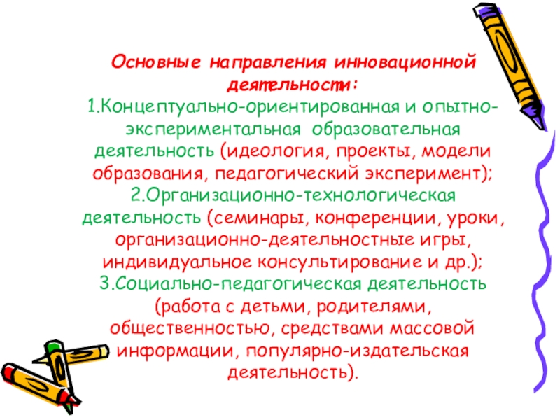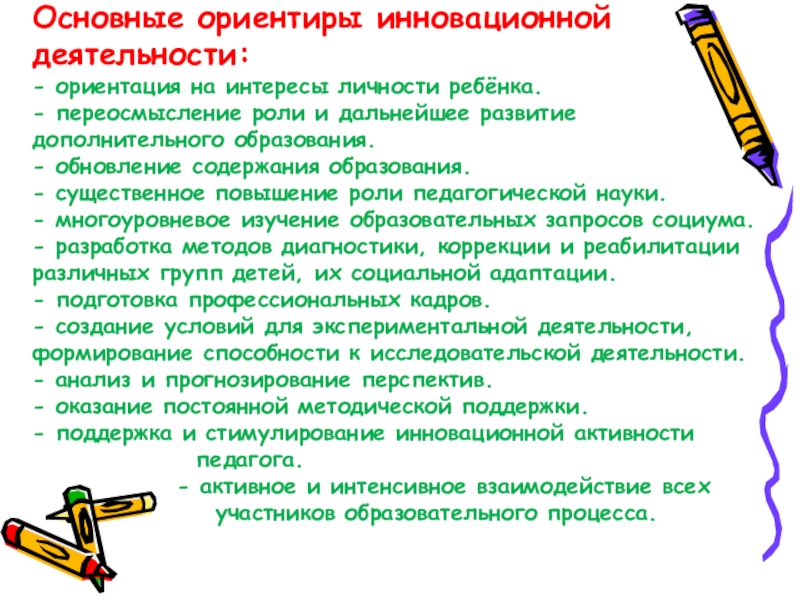 инновационная деятельность по обновлению содержания воспитания и обучения;