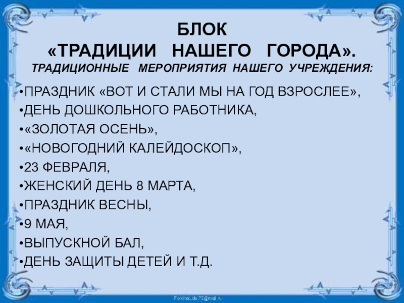Это сайт презентаций, где можно хранить и обмениваться своими презентациями, докладами, проектами, шаблонами в формате PowerPoint с другими пользователями. Мы помогаем школьникам, студентам, учителям, преподавателям хранить и обмениваться учебными материалами.
