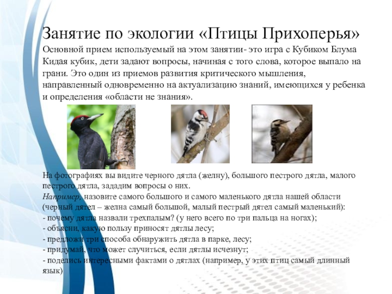 Слайд 7Занятие по экологии «Птицы Прихоперья»