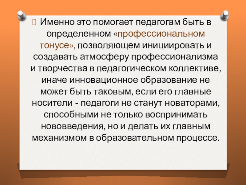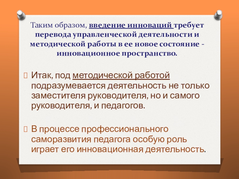 В процессе профессионального саморазвития педагога особую роль играет его инновационная деятельность.