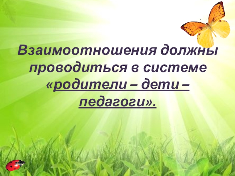 Слайд 3Взаимоотношения должны проводиться в системе  «родители – дети – педагоги».
