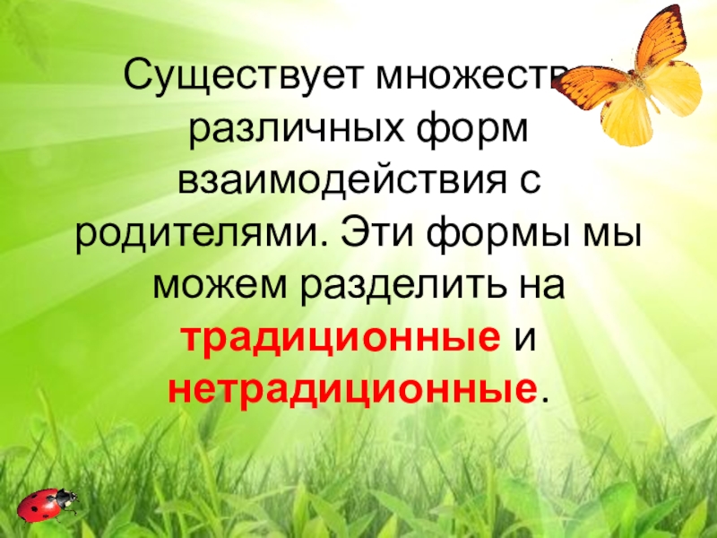 Существует множество различных форм взаимодействия с родителями. Эти формы мы можем разделить на традиционные и нетрадиционные.
