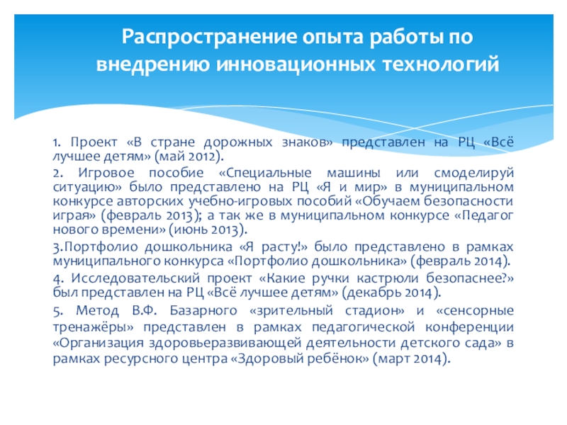 1. Проекты: «В стране дорожных знаков!», «Служба-01», «Служба-02»