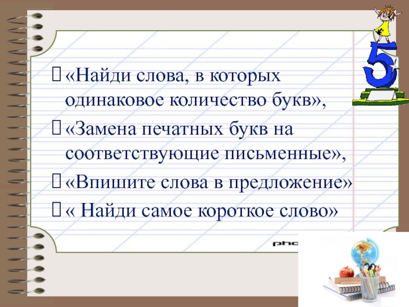 Слайд 20«Найди слова, в которых одинаковое количество букв»,