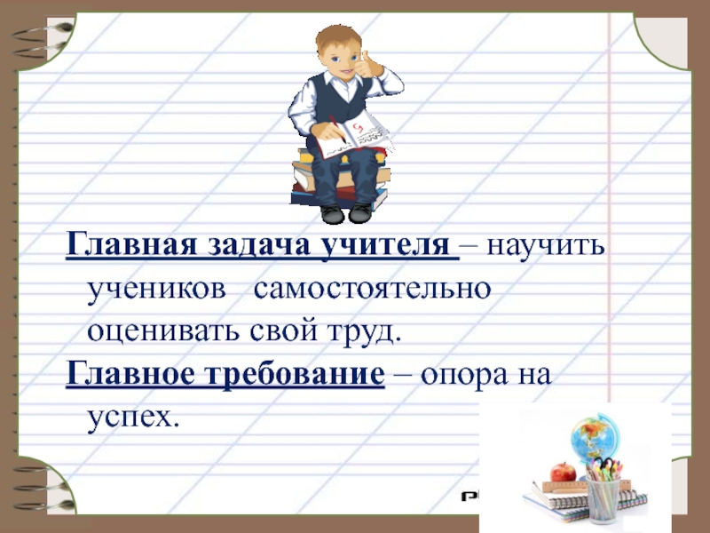 Главная задача учителя – научить учеников самостоятельно оценивать свой труд.