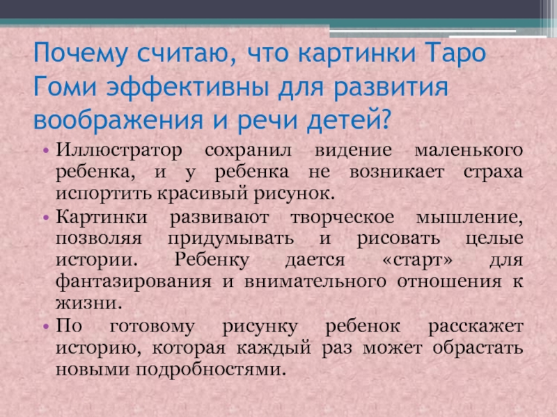 Слайд 16Почему считаю, что картинки Таро Гоми эффективны для развития воображения и