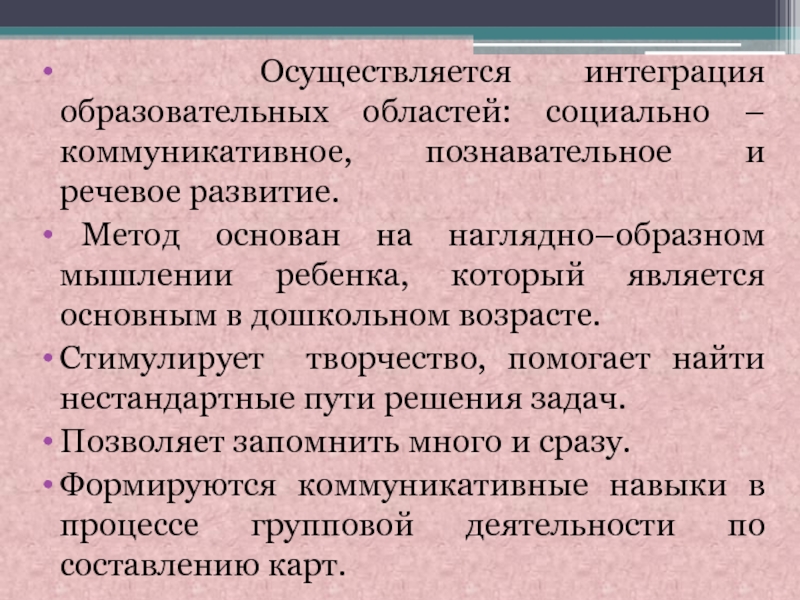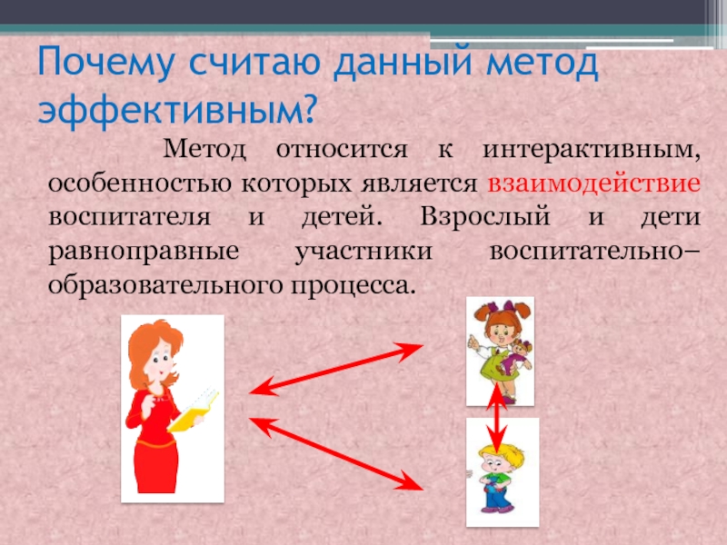 Метод основан на наглядно–образном мышлении ребенка, который является основным в дошкольном возрасте.